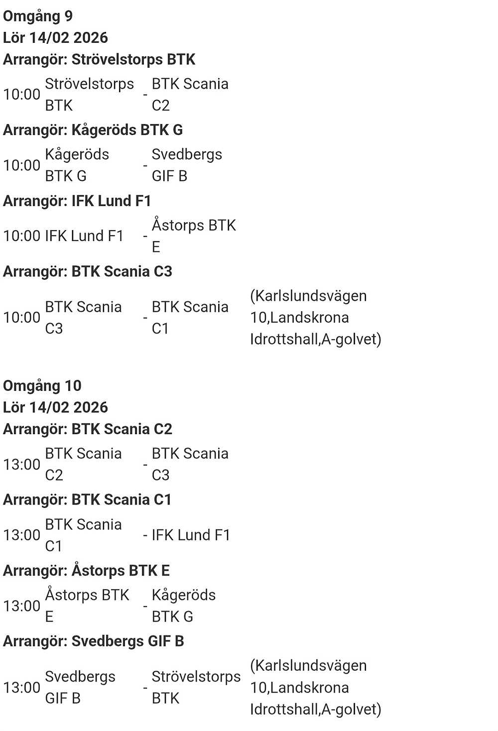 Den 14/2 är det obligatoriskt för spelare I C1,C2,C3 och A-laget att komma 08.00 och bygga hallen i för seriehelgen!.