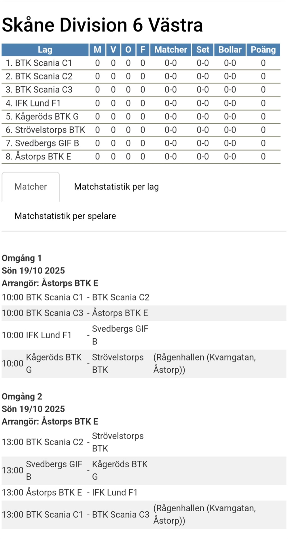 Precis som vanligt så måste 3 spelare kunna varje sammandrag, optimalt att vara 5-6 i laget.
